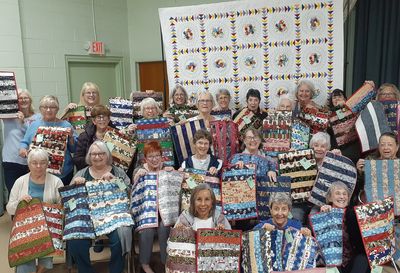 Each of our members is asked to donate at least one quilt per year to further our philanthropic efforts. Quilt kits are available to members; a group of guild members get together yearly to cut and put these kits together, made from donated fabric. It is a lot of fun, working with so many friendly members, getting to know each other better. Our guild is made up of caring members, helping each other and the community.